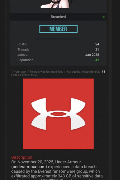 Under Armour is investigating a data breach after 72M customer records were...